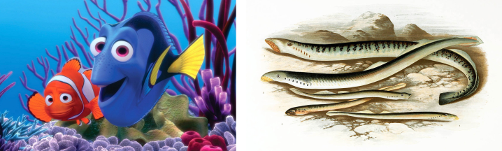 Nemo and Dory are fish (left). Lampreys are also fish (right).