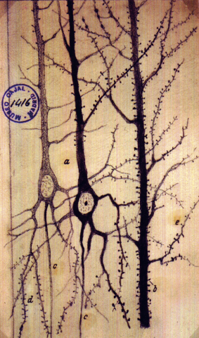 Actual neurons of the human brain chemically stained by the neuroscientist Santiago Ramón y Cajal (1852-1934) that led to the acceptance of the neuron doctrine. Image from: Glickstein, M. (2006). Golgi and Cajal: The neuron doctrine and the 100th anniversary of the 1906 Nobel Prize. Current Biology. 10.1016/j.cub.2006.02.053